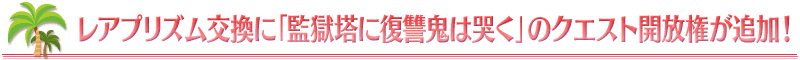 ※「レアプリズムを交換」に追加されるイベント「監獄塔に復讐鬼は哭く」のクエスト開放権は恒常となり、交換期限はありません。