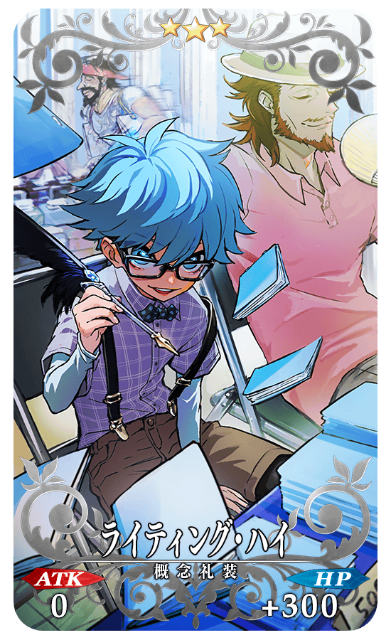 期間限定概念礼装として「★5(SSR)エメラルド・フロート」「★5(SSR)ヒーロー・オン・ザ・ビーチ」「★4(SR)疾風怒濤」「★4(SR)サンセット・ジャム」「★3(R)オールナイト・フィーバー」「★3(R)ライティング・ハイ」が登場!
