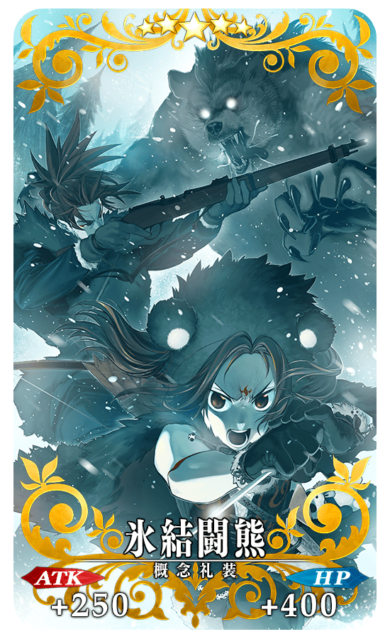 本イベントでは、メインクエストのクリア報酬やイベントアイテム交換、「おともだちポイント」の達成報酬でイベント限定概念礼装「スリー・アングラー」「ロイヤル・アイシング」「氷結闘熊」を入手できます。