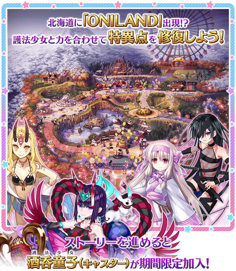 期間限定イベント「復刻:神秘の国のONILAND!! ~鬼の王とカムイの黄金~ ライト版」のクエスト限定で「★4(SR)酒呑童子(キャスター)」に特殊な効果が追加!