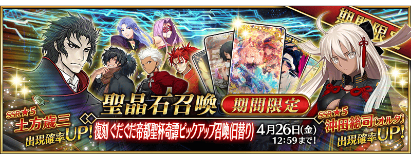その他にも、期間限定「復刻 ぐだぐだ帝都聖杯奇譚ピックアップ召喚(日替り)」を同時開催!