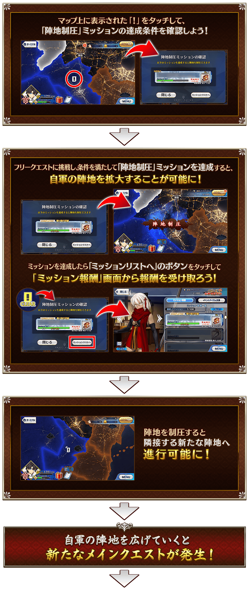 ※クリア条件を満たしただけでは、報酬は入手できませんのでご注意ください。 ※ミッション報酬を受け取らないと、新たなミッションやスポットが開放されないことがありますのでご注意ください。