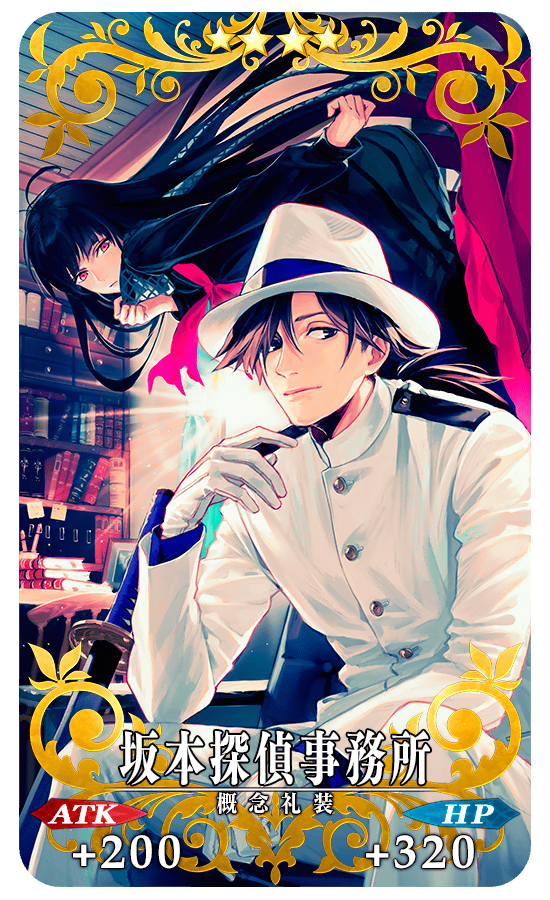期間限定概念礼装として「★5(SSR)帝都聖杯戦争」「★4(SR)坂本探偵事務所」「★3(R)牙研ぐ暗剣」が登場!