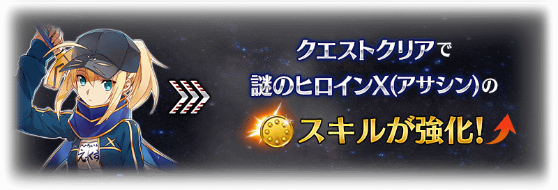 特定のイベントクエストをクリアすると、報酬として「★5(SSR)謎のヒロインX(アサシン)」の一部スキルが強化されます。