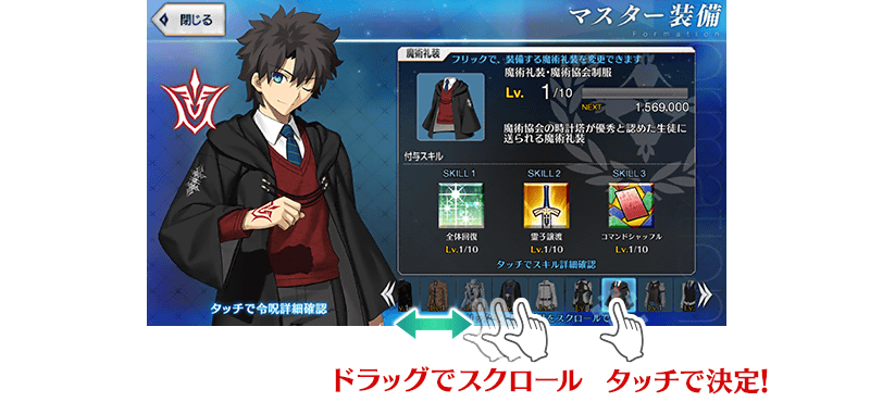 また、表示数を超える魔術礼装を所持している場合にはアイコンをドラッグしてスクロールすることで、装備したい魔術礼装を探すことができるようになります。