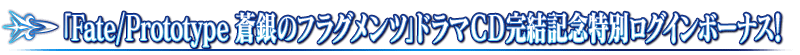 「Fate/Prototype 蒼銀のフラグメンツ」ドラマCDの完結を記念した特別ログインボーナスを実施いたします。