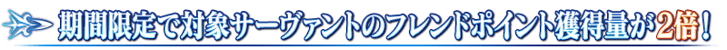 ※NPCサーヴァントの場合、対象サーヴァントであってもフレンドポイント獲得量2倍の対象外となりますのでご注意ください。