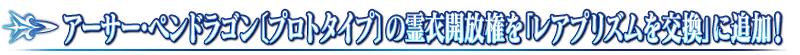 ※「★5(SSR)アーサー・ペンドラゴン〔プロトタイプ〕」を未所持の場合、霊衣開放権は入手できますが、霊衣開放はおこなえませんのでご注意ください。