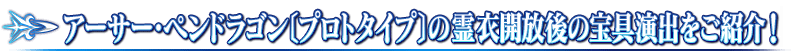 ※上記の「★5(SSR)アーサー・ペンドラゴン〔プロトタイプ〕」のイラストは霊基再臨第2段階のものです。