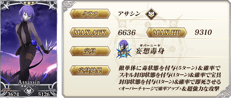 ※上記の「★3(R)静謐のハサン」のセイントグラフは霊基再臨第2段階のものです。