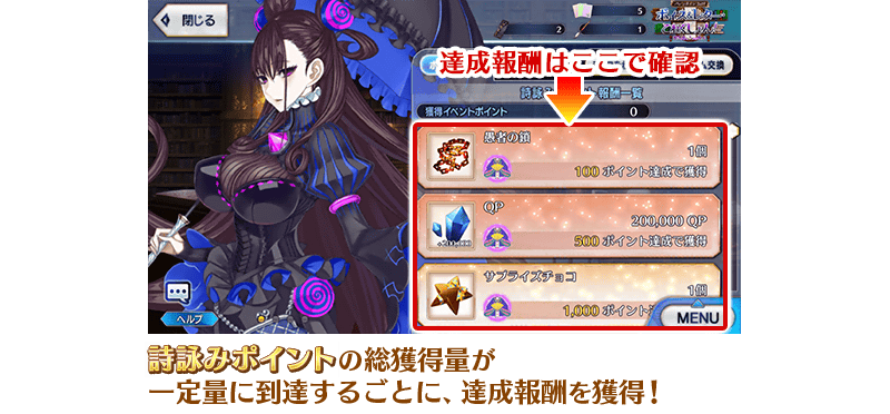 ※詩詠みポイントの総獲得量はイベントクエストでドロップした詩詠みポイントを獲得するとカウントされます。