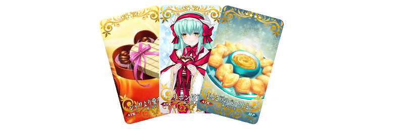 ※以前のイベントで入手したプレゼント(概念礼装)を所持している場合は、プレゼントをもらうイベントを発生させてもその場でプレゼント(概念礼装)を受け取ることはできません。その場合は、所持しているプレゼント(概念礼装)を売却または強化用素材に使用した後に、イベントアイテム交換の「チョコをもらう」「チョコをわたす」でプレゼント(概念礼装)を受け取れます。