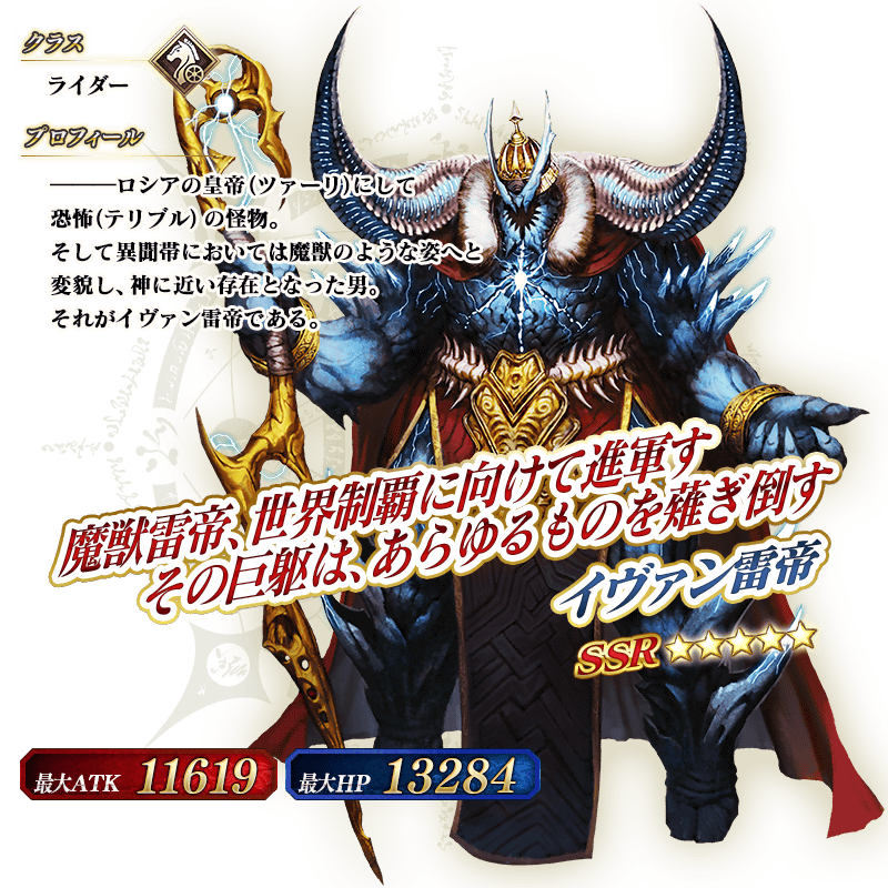 ※上記の「★5(SSR)イヴァン雷帝」のイラストは霊基再臨第2段階のものです。