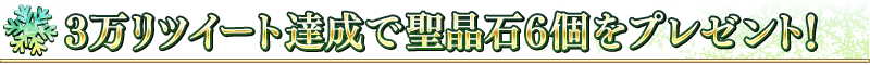 動画が配信されているツイートのリツイート数が、下記の期間内で3万リツイートを達成すると、聖晶石6個をプレゼント!