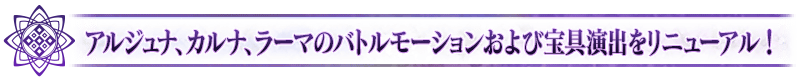 「★5(SSR)アルジュナ」「★5(SSR)カルナ」「★4(SR)ラーマ」のバトルモーションおよび宝具演出をリニューアルいたします!