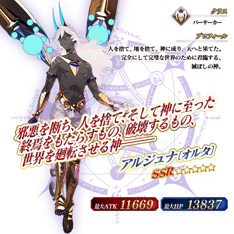 第2部 第4章「Lostbelt No.4 創世滅亡輪廻 ユガ・クシェートラ 黒き最後の神」より、「★5(SSR)アルジュナ〔オルタ〕」が期間限定で登場!