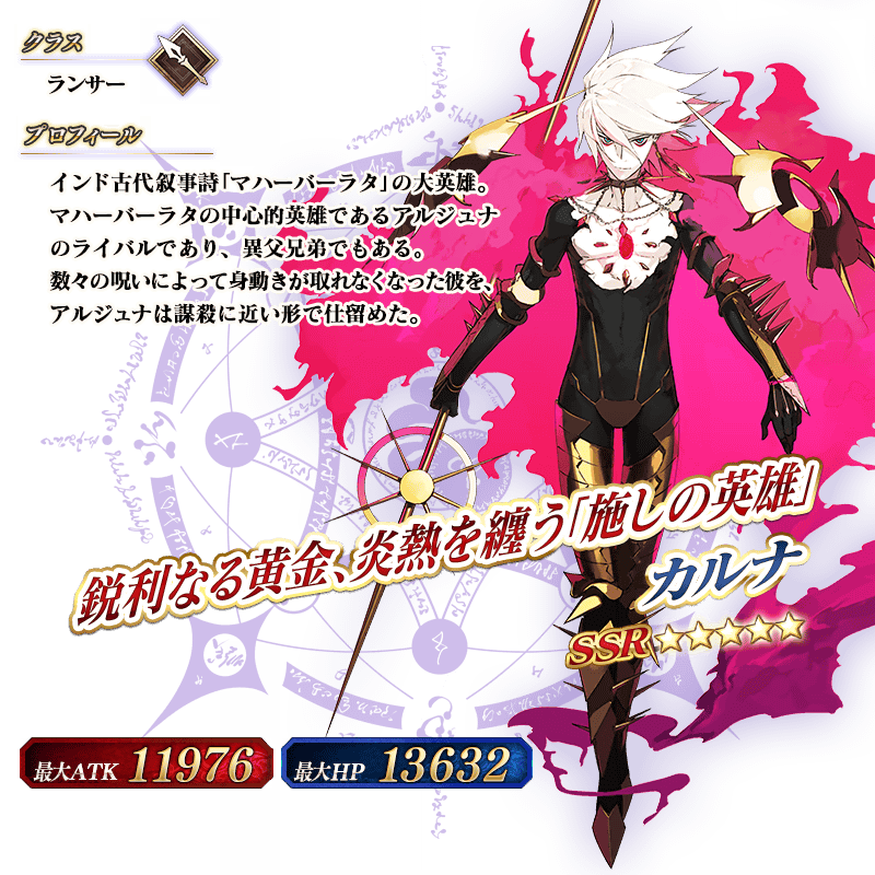 ※上記の「★5(SSR)カルナ」のイラストは霊基再臨第2段階のものです。