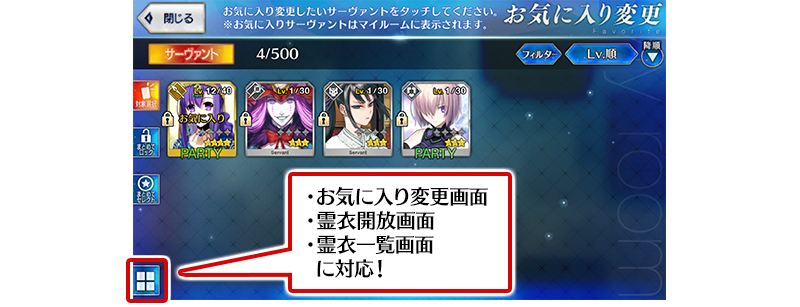 カードサイズ変更機能を、お気に入り変更画面や霊衣一覧画面にも拡張いたします。