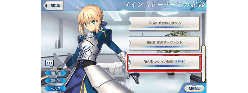 ※メインストーリーと幕間の物語のクエストが対象となります。イベントのクエストは対象となりません。 ※進行度の途中まで登録されているストーリーのボードには青文字で(進行中)と表示されます。