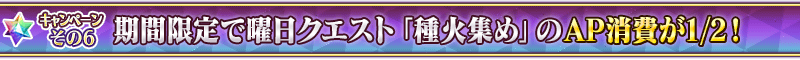 期間限定で、カルデアゲート内に曜日ごとに出現するクエスト「種火集め」のAP消費量が1/2になります!