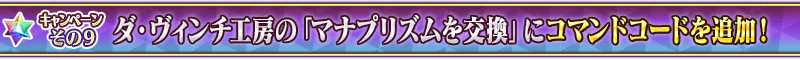 「1900万DL突破キャンペーン」開催を記念して、ダ・ヴィンチ工房の「マナプリズムを交換」に、下記のコマンドコードを恒常追加いたします。