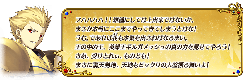 【カムバック連続ログインボーナス合計】 ・聖晶石 30個(聖晶石召喚最大11回分) ・フレンドポイント 14,000pt(フレンドポイント召喚70回分) ・叡智の猛火 ALL★4(SR) 16枚 ・黄金の果実 16個