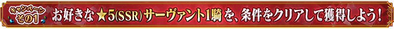 ※無記名霊基の獲得条件(同一の★5(SSR)サーヴァントを累計6騎以上入手)は召喚により入手した場合のみカウントされ、本キャンペーンで同一の★5(SSR)サーヴァントを入手した場合はカウントされませんのでご注意ください。