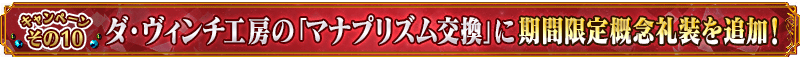 2000万DL突破を記念して、期間限定でダ・ヴィンチ工房の「マナプリズムを交換」に、下記の概念礼装を追加いたします。