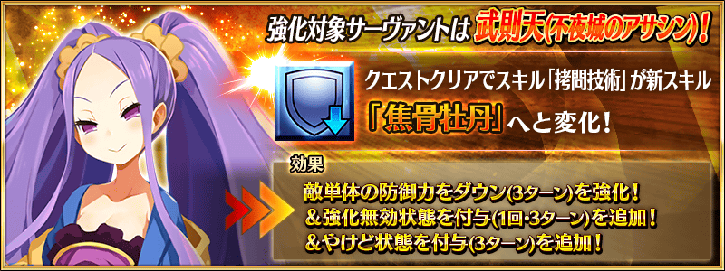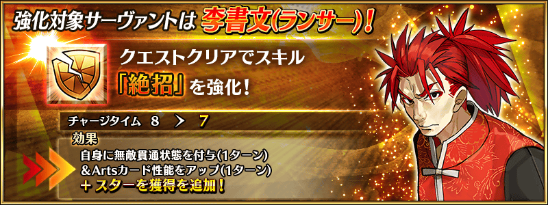 「★4(SR)李書文(ランサー)」「★4(SR)武則天(不夜城のアサシン)」が強化される特別なクエスト「サーヴァント強化クエスト」が、カルデアゲートに恒常的に追加されます。