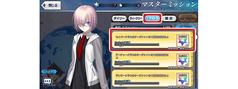 | エクストラクラスのサーヴァントを5騎最終再臨せよ |