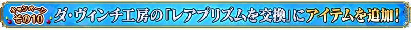 「2100万DL突破キャンペーン」開催を記念して、ダ・ヴィンチ工房の「レアプリズムを交換」に、『マナプリズム交換「パーソナル・コーチング」開放権』を恒常追加いたします。