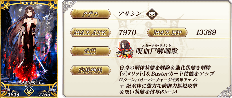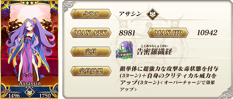 ※上記の「★4(SR)虞美人(アサシン)」のセイントグラフは霊基再臨第2段階のものです。