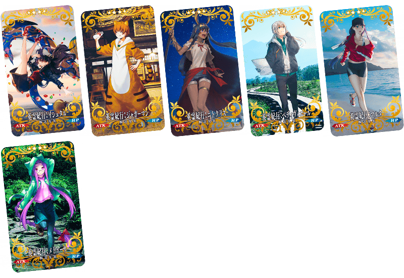 【佐賀県】 英霊紀行:イシュタル 【愛媛県】 英霊紀行:ジャガーマン 【鳥取県】 英霊紀行:ニトクリス 【群馬県】 英霊紀行:ベディヴィエール 【沖縄県】 英霊紀行:マルタ 【三重県】 英霊紀行:メドゥーサ | |