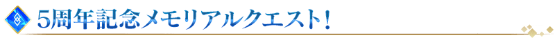 5周年を記念して、第一特異点 邪竜百年戦争 オルレアンからLostbelt No.5 神代巨神海洋 アトランティスまでのなかから印象に残るバトルを集めた「5周年記念メモリアルクエスト」を開催いたします!