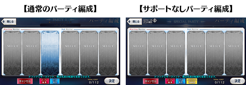 期間限定イベント「救え! アマゾネス・ドットコム ~CEOクライシス2020~」では一部のクエストを除き、通常のパーティ編成とは異なり、パーティのメンバーとしてサポートサーヴァントを選択することができません。