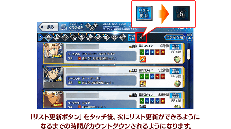 これにより、サポートサーヴァントのリスト更新をスムーズにおこなえるようになります。