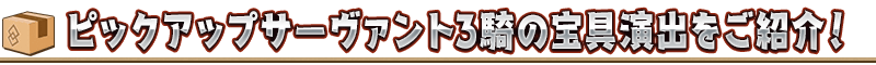 今回は、上記を含む3騎のサーヴァントをピックアップ!