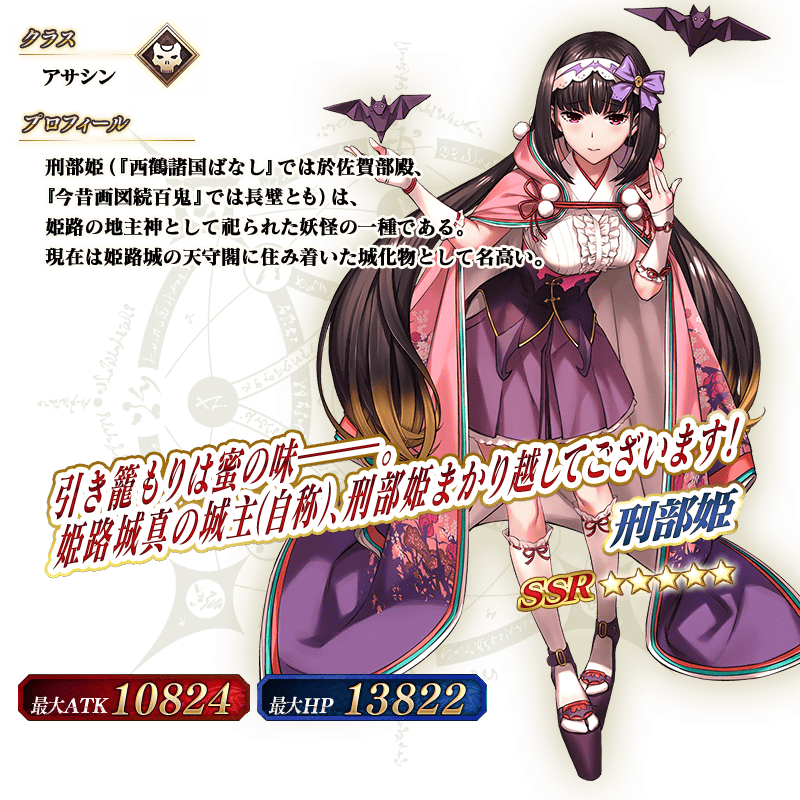 ※上記の「★5(SSR)刑部姫(アサシン)」のイラストは霊基再臨第2段階のものです。