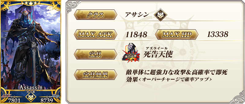 ※上記の「★5(SSR)“山の翁”」のセイントグラフは霊基再臨第2段階のものです。