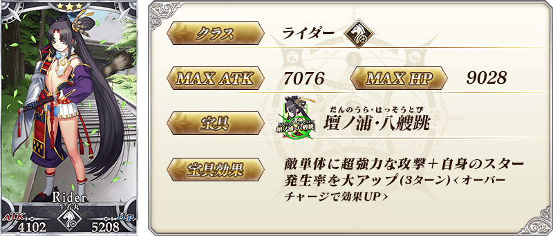 ※上記の「★3(R)牛若丸(ライダー)」のセイントグラフは霊基再臨第2段階のものです。