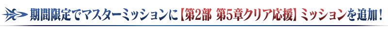 下記の期間中、「マスターミッション」の「限定」タブ内に期間限定で「【第2部 第5章クリア応援】ミッション」が追加されます。