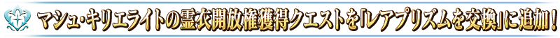 「★3(R)マシュ・キリエライト」の霊衣「常夏の水着」開放権獲得クエストをダ・ヴィンチ工房の「レアプリズムを交換」に追加!