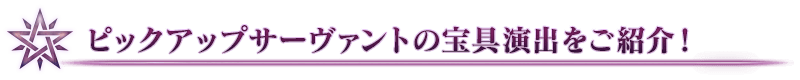 「Fate/Grand Order」公式サイト内のお知らせでは、宝具演出を動画で公開しておりますので、あわせてご確認ください。
