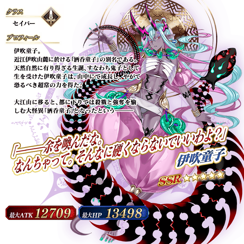 ※上記の「★5(SSR)伊吹童子」のイラストは霊基再臨第3段階のものです。