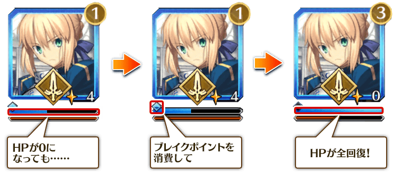 聖杯戦線のバトルでは、サーヴァントのHPが0になった時に消費されるブレイクポイントが存在します。