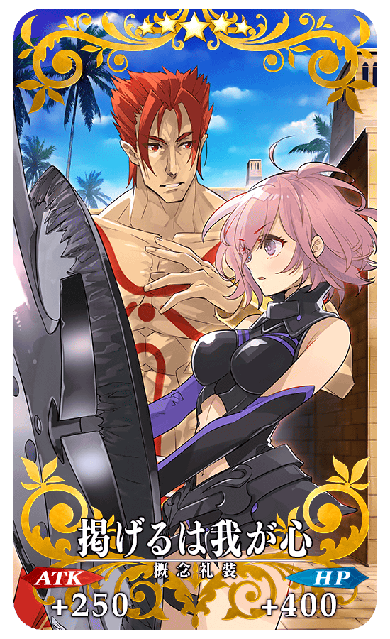イベントアイテム交換で入手できるイベント限定概念礼装「★5(SSR)掲げるは我が心」を装備することで、イベントアイテム「戦士の名札」のドロップ獲得数がアップします。