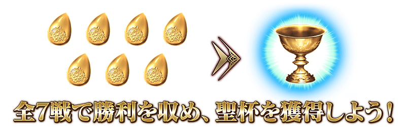 聖杯戦線は、敵味方に分かれたマスターとサーヴァントが、専用のバトルフィールドでバトルを繰り広げ、勝敗を争います。勝利することで聖杯の雫を1つ入手でき、7つ集めることで聖杯と交換可能になるので、すべての戦いを勝ち抜き、聖杯の獲得を目指しましょう!