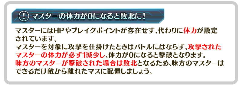 マスタースキルは、バトルの参加者とマスターのマスが離れていても使用することができます。
