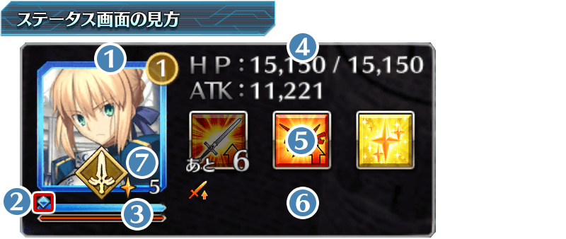 また、味方サーヴァントのアイコンを長押しした場合はサーヴァント詳細画面が表示され、敵サーヴァントのアイコンを長押しした場合は状態変化詳細が表示されます。