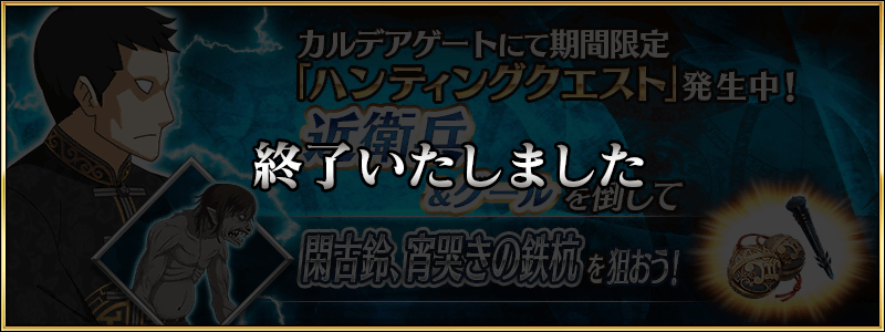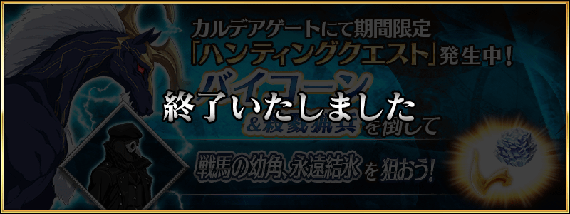 開催期間中、特定のエネミーを対象としたハンティングクエストが順番にカルデアゲートに出現します。